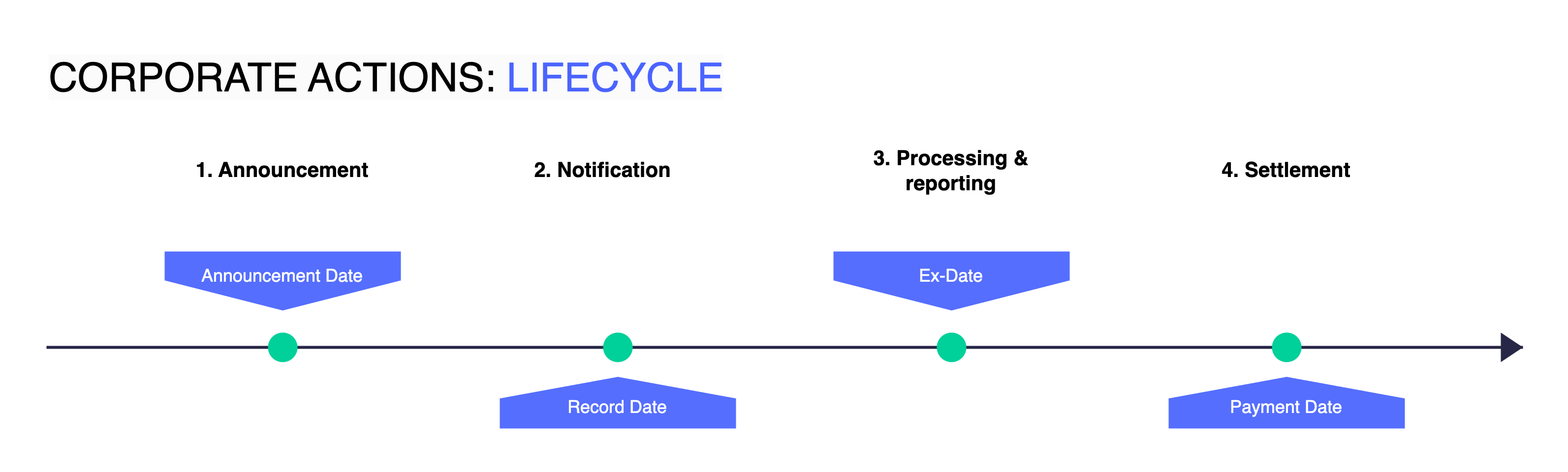 The following diagram outlines an exemplary lifecycle of a corporate action.