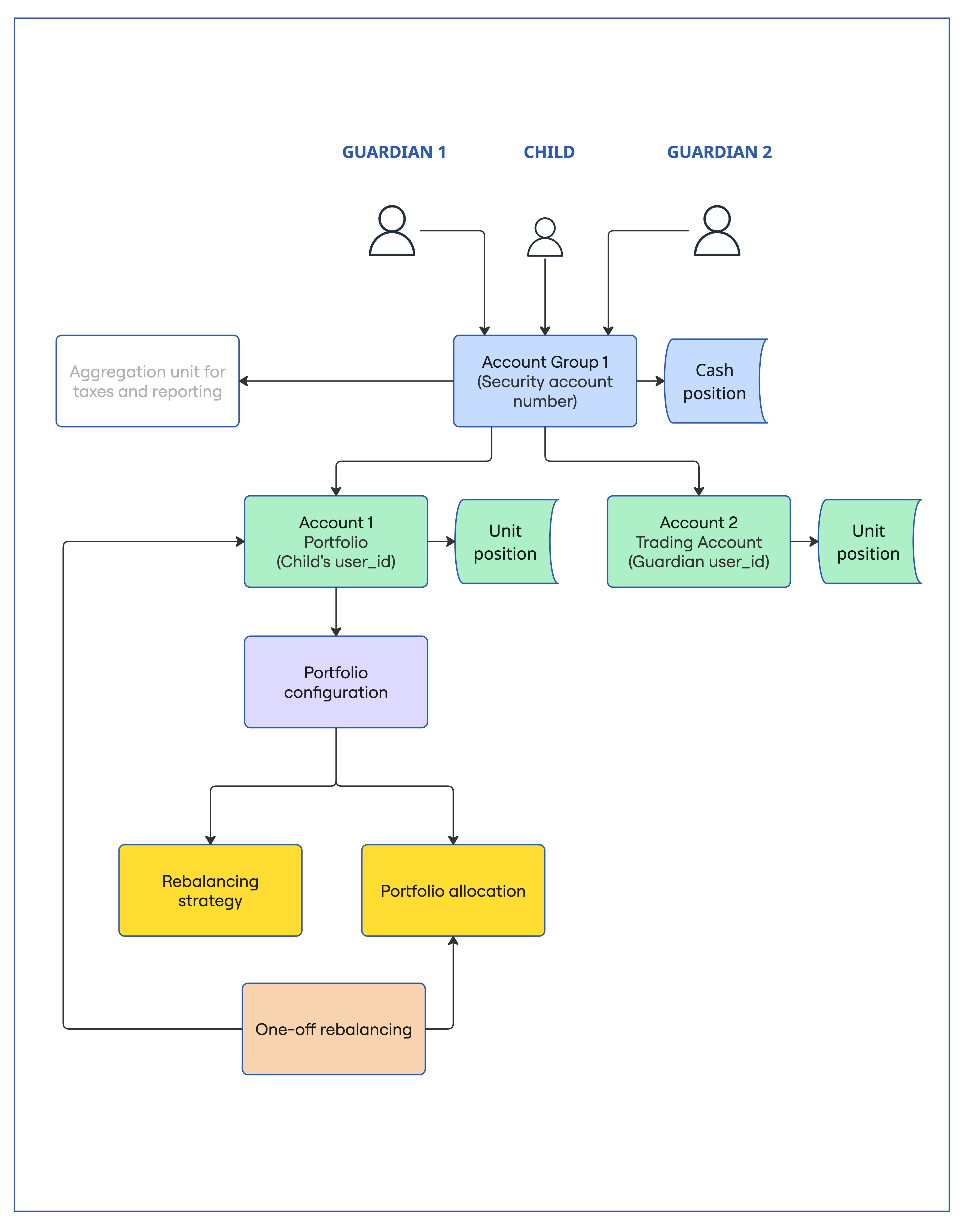 - Onboarding: The Investment API supports the creation of both guardian and child users and the ability to map them to a single account group.