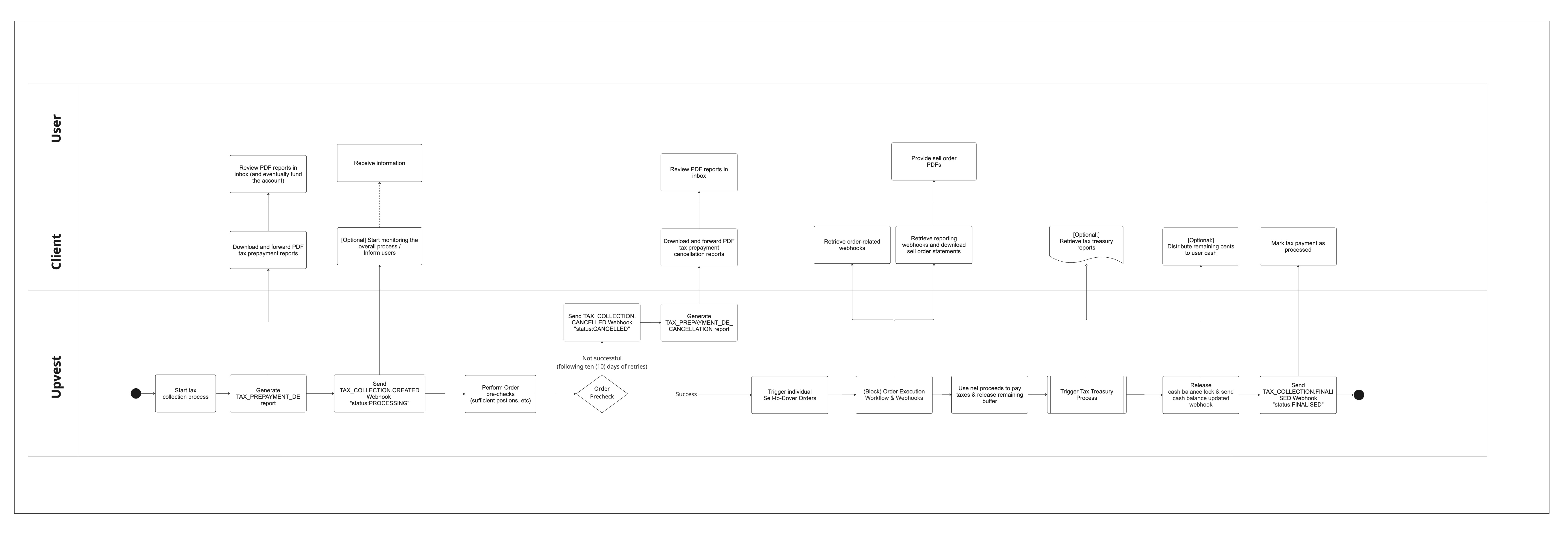 The following diagram shows how Upvest and clients should handle tax collection events.