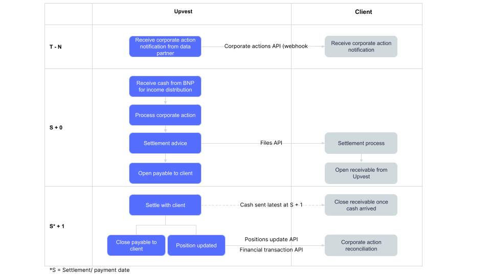 In the case of corporate actions distributions, the main difference is that no withholding tax is applied and upon settlement we generate a separate settlement invoice in the same nature as the trading settlement invoice. Once the settlement invoice is received, we transfer the applicable funds to our client.